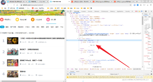 (5)網頁分析——在查看到視頻播放量信息時,發現其存放在span標簽下,含有空格,在編寫代碼時,使用strip()方法進行去除空格