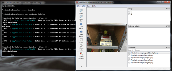 命令行輸入 labelme image1.png --output image1.json --flags 0,1
