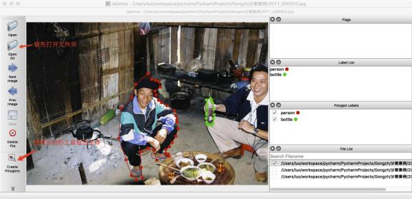 創建分割標簽主要用到多邊形工具, 把需要的區域框出來就好了。