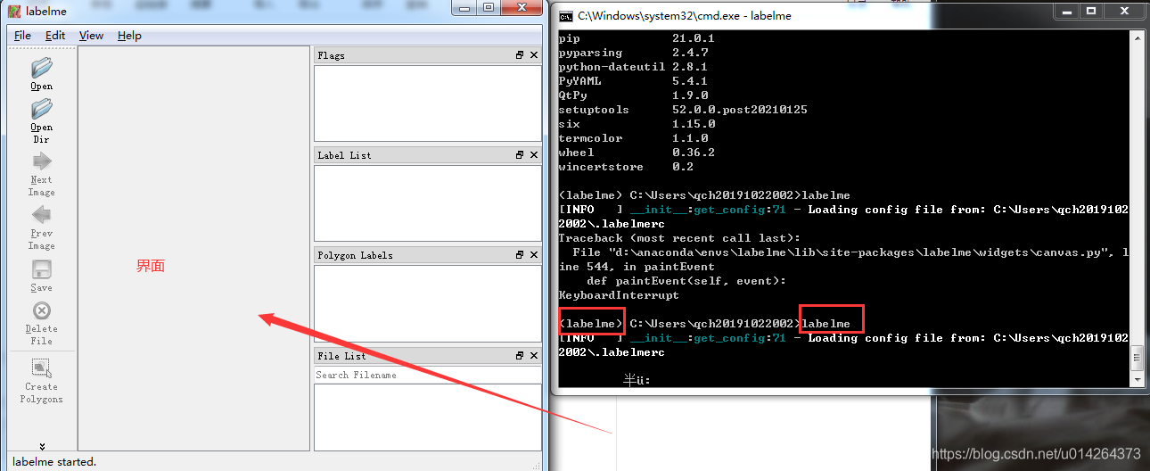 - 命令行輸入 conda.bat activate anaconda\envs\labelme(注意和原博客不一樣)
