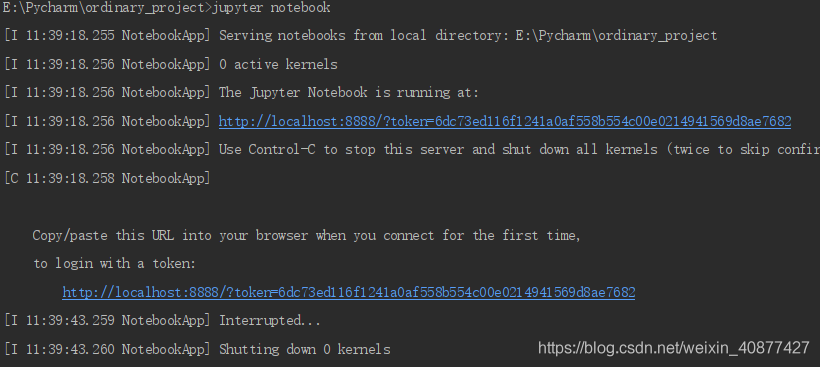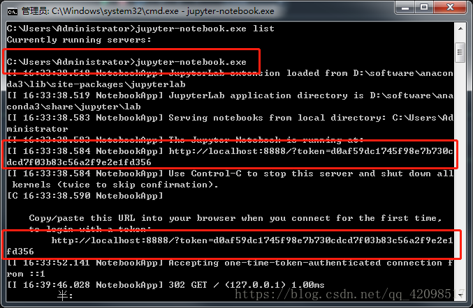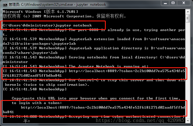 直接輸入【jupyter notebook】回車(chē)即可,方框處即是所需要的token了,兩處都是一樣的: