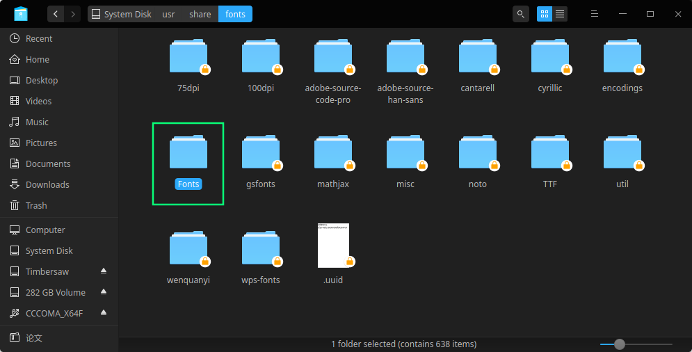 cd到/usr/share/fonts/Fonts,也就是拷貝來的文件夾, 建立字體索引信息,更新字體緩存,讓字體生效, 運行命令: