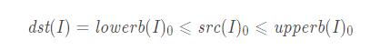 也就是說,如果src (I)在指定的1D, 2D, 3D,…框內(nèi)則dst(I)為255,否則為0。當(dāng)下邊界和/或上邊界參數(shù)為標量時,應(yīng)省略上述公式中在上、下邊界處的索引(I)。