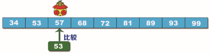 例如,已經(jīng)有排序好的數(shù)列:34、53、57、68、72、81、89、93、99。要查找的數(shù)據(jù)是 53,使用插補(bǔ)查找法步驟如下: