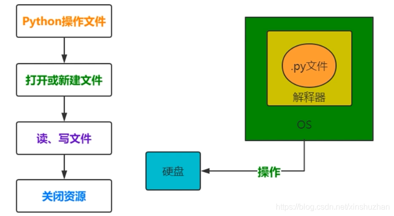 .py文件是用解釋器去運行,調用OS操作系統的資源,去操作磁盤上的文件。