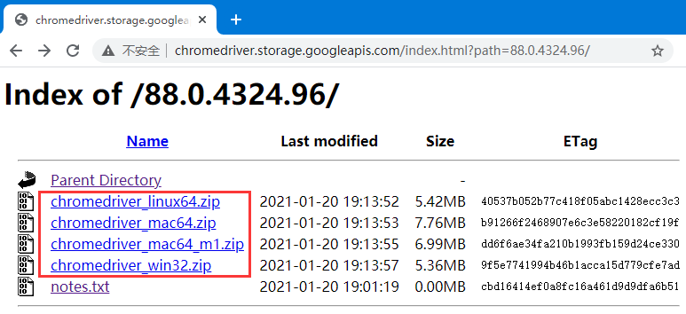 官方下載地址:http://chromedriver.storage.googleapis.com/index.html