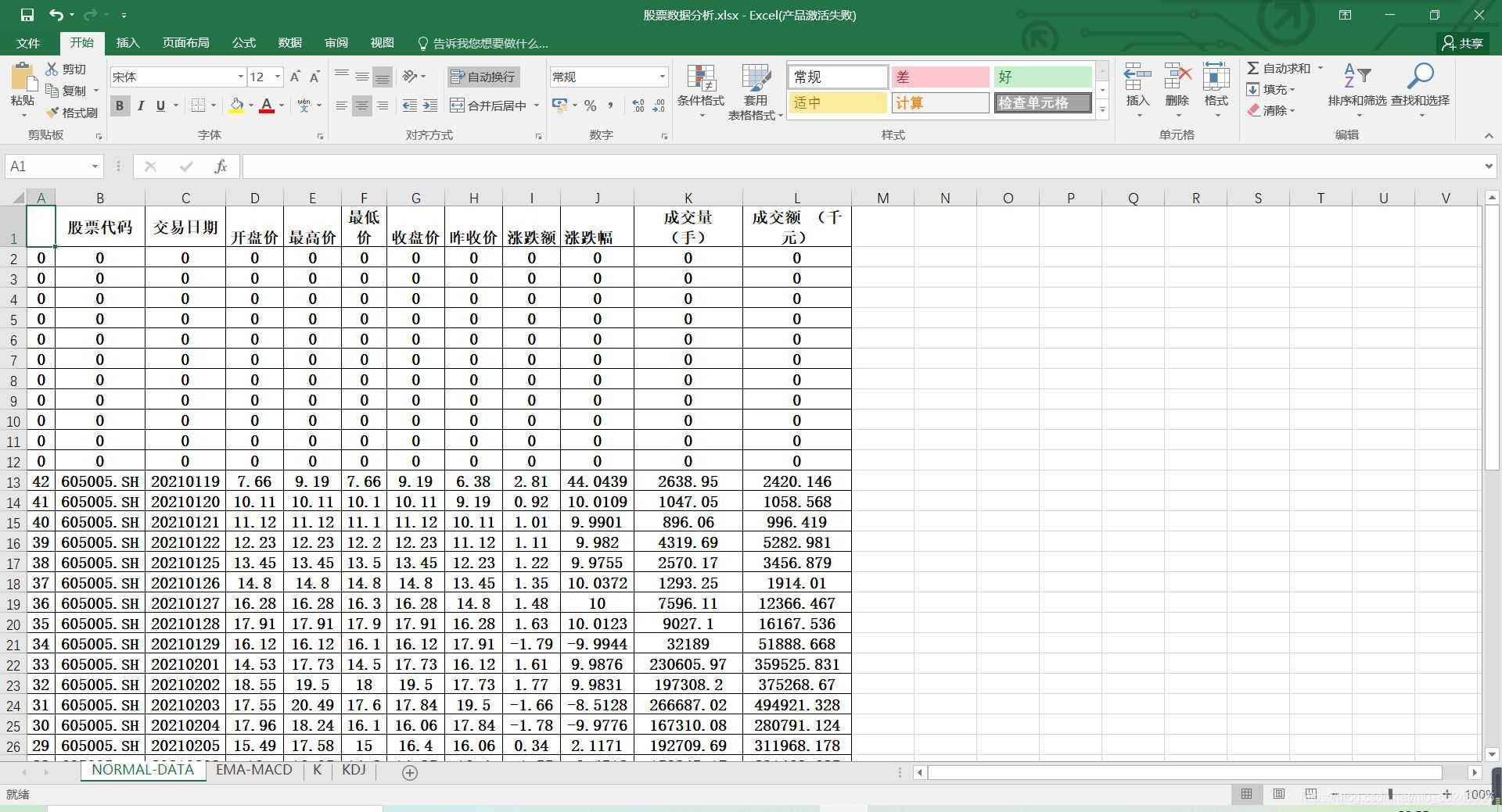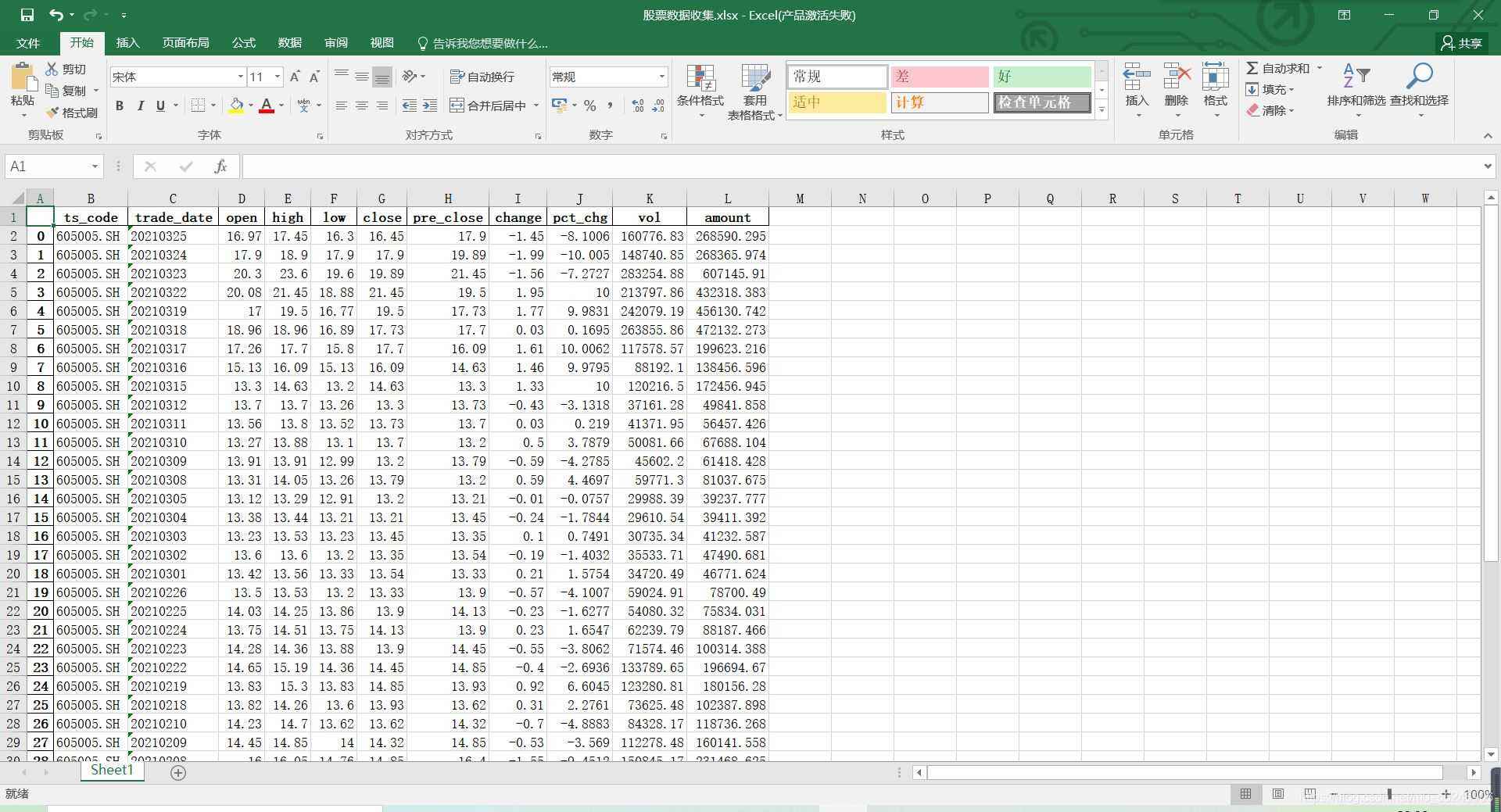 excel打開后成這個模樣,此時我們已經成功獲取相關股票數據