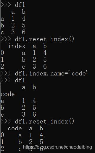 如上圖,如果直接reset_index,index列變成普通列,但是列頭自動變成了index,這可不好,所以先給index列賦值,也就是df1.index.name=‘code'