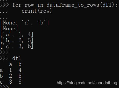 df1=pd.DataFrame([[1,4],[2,5],[3,6]] ,index=['a','b','c'],columns=['a','b'])