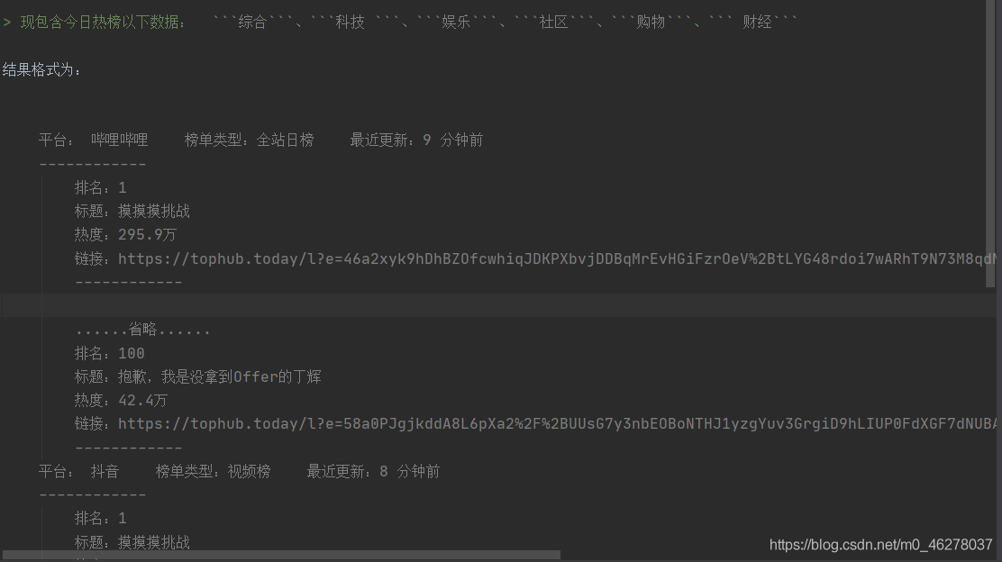 output2 = """平臺(tái):{} 榜單類型:{} 最近更新:{}\n------------\n"""