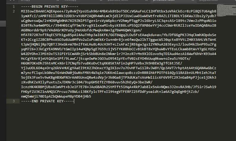 然后我們將產生的額應用公私鑰和支付寶公鑰保存為下列內容形式的文件,如圖: