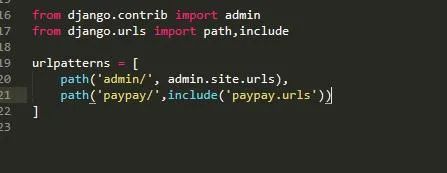 看到輸出的結果表明這個子應用已經啟動并返回了結果。我們也可以不用經過子應用直接在創建的項目根目錄下運行啟動Django應用,首先在pay目錄下新建一個view.py文件,然后將其添加到該目錄下的urls.py文件中,如下: