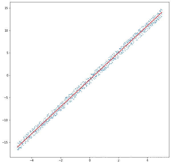 通過梯度下降法,得出了a= 3.0118297762197526,b= -1.002674927350334,也是很接近真實的a,b值了,作圖看看