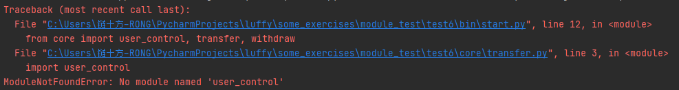 然后我單獨執行了transfer.py文件,沒有報錯,也就是說能夠找到user_control,但是為何在執行start.py的時候又找不到呢?