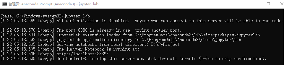 會在瀏覽器中打開jupyter lab(注意在jupyter lab使用中不要關閉這個命令窗口)。