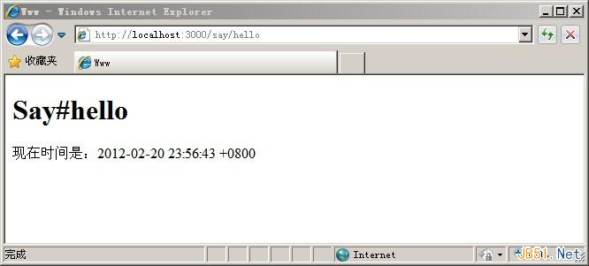 注意:將視圖文件 hello.html.erb 另存為UTF-8編碼格式,否則中文會出現亂碼。說明一下是UTF-8編碼,而不是 UTF-8 +BOM 編碼,BOM 是通過文件開頭添加幾個字符表示文件編碼的標準。但是只有微軟用了,x-nix 、PHP、Ruby 不認。