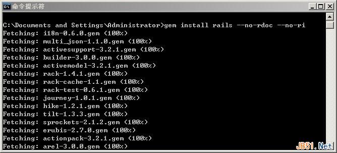 如不想安裝文檔文件,可以輸入:gem install rails --no-rdoc --no-ri