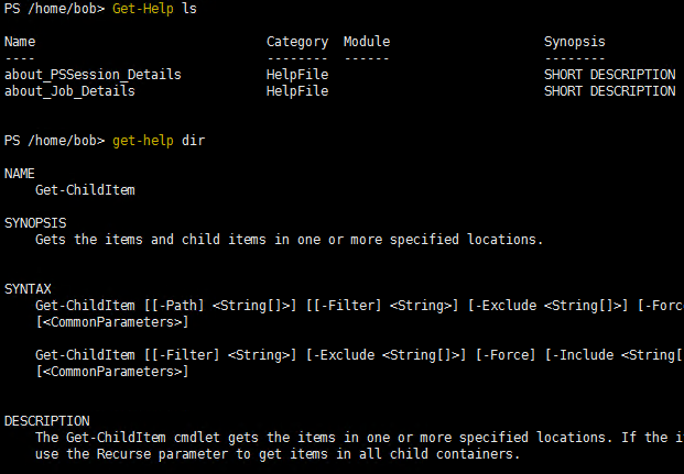 Windows上的PowerShell有一些Linux類型的別名,比如ls、cat、man、etc等,然而,這些別名在Linux上為了防止沖突已經不存在了,如下例子,ls在Windows PowerShell中也是Get-ChildItem的別名,而在Linux PowerShell Core中查不到: