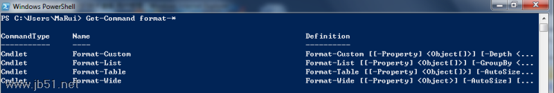 在這一小節,我將介紹PowerShell中的格式化輸出。當我們使用一個cmdlet時,參數"format-"允許我們選擇一種習慣的輸出模式。使用以下命令試一試: