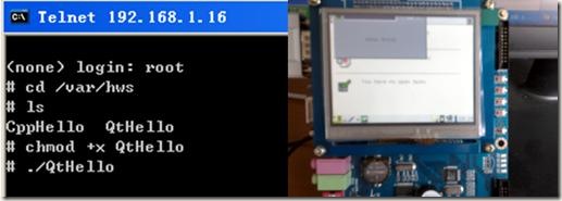 5.將QtHello文件傳送到arm板并運行程序(詳細操作方法在4.2.3節中有介紹)。