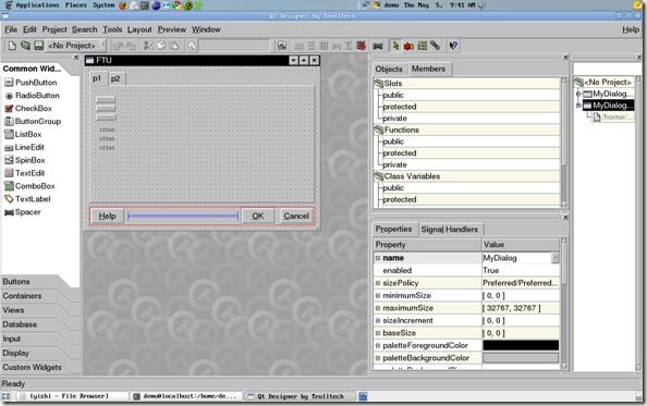 在Linux系統中打開Qt Designer,然后進行可視化窗口設計。然后點擊保存為mydialog.ui文件。