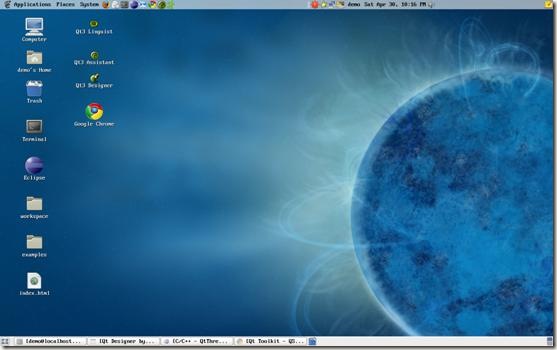 如果在安裝Fedora的時候,選擇的是完全安裝,系統會自帶很多開發工具。其中Fedora -Eclipse CDT和Qt庫及相關設計器Qt Designer是我們今后開發的主要工具。