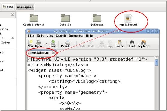 打開mydialog.ui文件,發現其實只是一個xml文件: