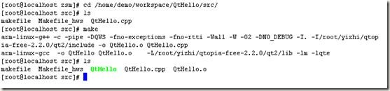 在3.2節中已經寫好了一個單文件的項目QtHello,并在項目的src目錄下生成了一個QtHello.cpp文件,然后我們要做的就是利用arm-linux下的Qt編譯器對其進行編譯。
