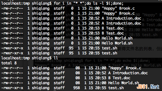 有一個辦法,通過 for i in "* *" 可以獲得文件名的列表,但是一個很糟糕的列表,因為這個結(jié)果是一個兩個文件名在一起的列表,我們完全無法拿來做后續(xù)的操作,如下圖所示