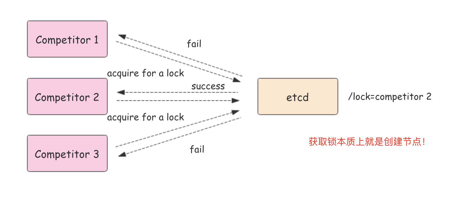 因為 etcd 使用 Raft 算法保持了數(shù)據(jù)的強一致性,某次操作存儲到集群中的值必然是全局一致的,所以很容易實現(xiàn)分布式鎖。鎖服務(wù)有兩種使用方式,一是保持獨占,二是控制時序。