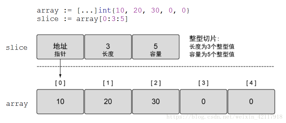 slice并不是真正意義上的動態數組,而是一個引用類型。slice總是指向一個底層array,slice的聲明也可以像array一樣,只是不需要長度。