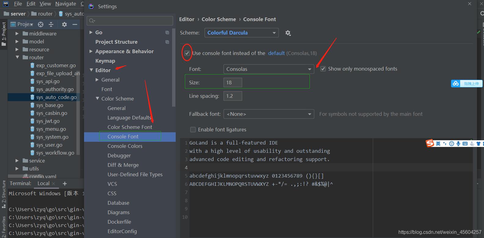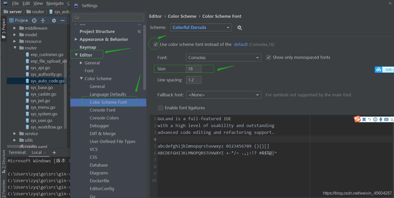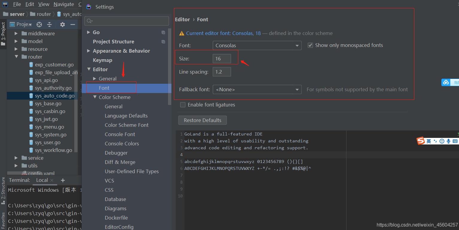 巨人網(wǎng)絡(luò)通訊聲明:本文標(biāo)題《Goland調(diào)節(jié)字體大小的設(shè)置(編輯區(qū),terminal區(qū),頁面字體)》,本文關(guān)鍵詞 Goland,調(diào)節(jié),字,體大,小的,;如發(fā)現(xiàn)本文內(nèi)容存在版權(quán)問題,煩請(qǐng)?zhí)峁┫嚓P(guān)信息告之我們,我們將及時(shí)溝通與處理。本站內(nèi)容系統(tǒng)采集于網(wǎng)絡(luò),涉及言論、版權(quán)與本站無關(guān)。