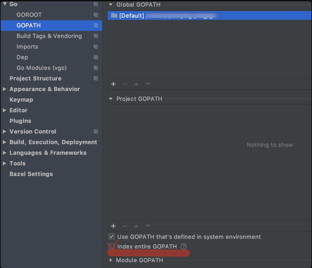 還有一個方法:Perferences --> GOPATH --> Index entire GOPATH 勾上,就可以了。
