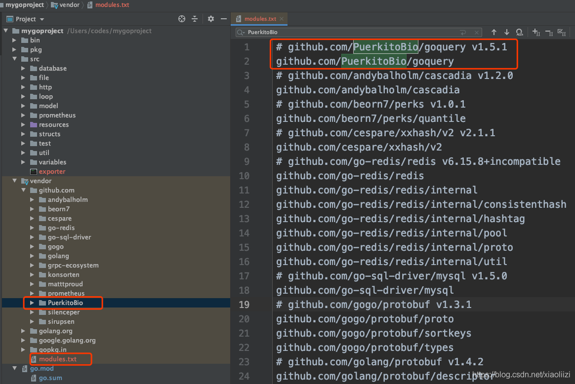 在modules.txt 中的依賴會優(yōu)先從vendor 目錄中查找。