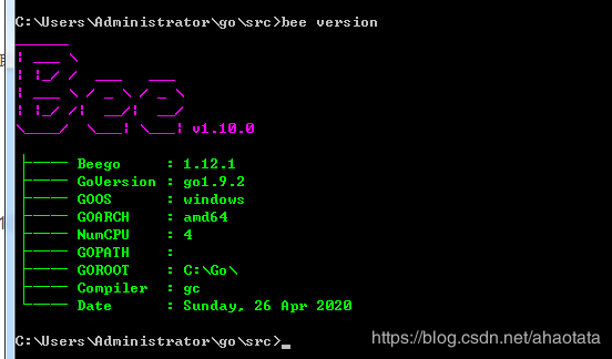 為了方便的生成框架,點擊“Git Bash”,輸入“go get github.com/beego/bee ”,如下圖