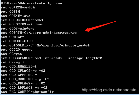 從命令行輸出中,可以看到 GOPATH 設定的路徑為:C:\Users\Administrator\go
