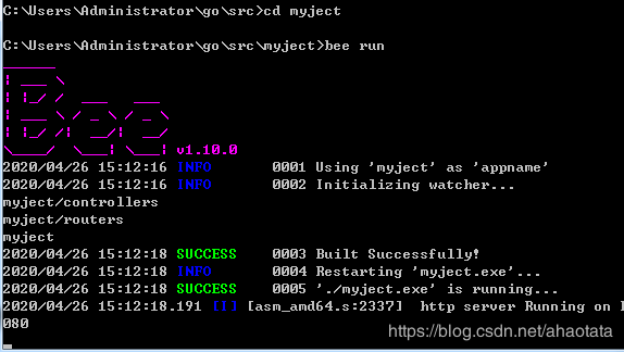 我們在開發 Go 項目的時候最大的問題是經常需要自己手動去編譯再運行,bee run 命令是監控 beego 的項目,通過 fsnotify監控文件系統。但是注意該命令必須在 $GOPATH/src/appname 下執行。