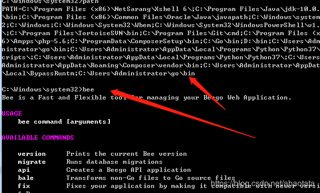 安裝完之后,bee 可執行文件默認存放在 $GOPATH/bin 里面,所以您需要把 $GOPATH/bin 添加到您的環境變量中,才可以進行下一步。