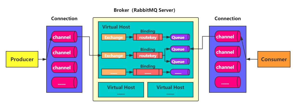 - Channels(通道):連接建立后,會形成通道,消息的投遞獲取依賴通道。