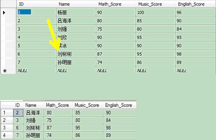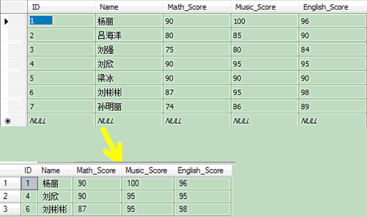 例如:查詢姓劉的學生數學成績以最后一位數不是7或者是英語在90分以上的