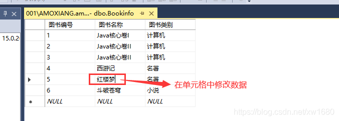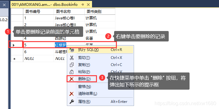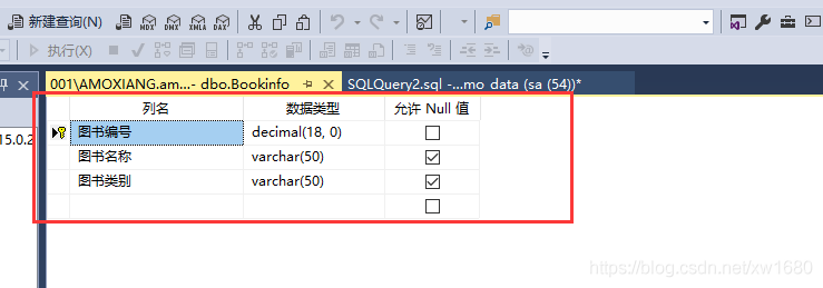 因為這里我們要對數據進行操作,所以我們先要準備一些數據。使用 sql 語句向表 dbo.Bookinfo 插入數據方式如圖所示: