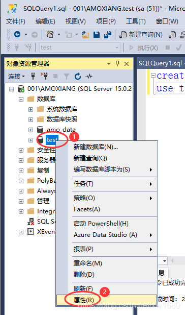 (1) 啟動 SQL Server 可視化管理工具,并連接數據庫,在 對象資源管理器 中展開 數據庫 節點。