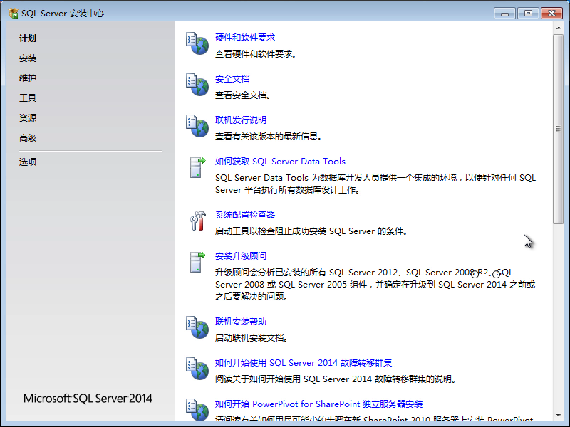 21、當我們看到 SQL Server 2014 的各個功能選項窗口,就說明我們已經的 SQL Server 2014 就安裝成功了。