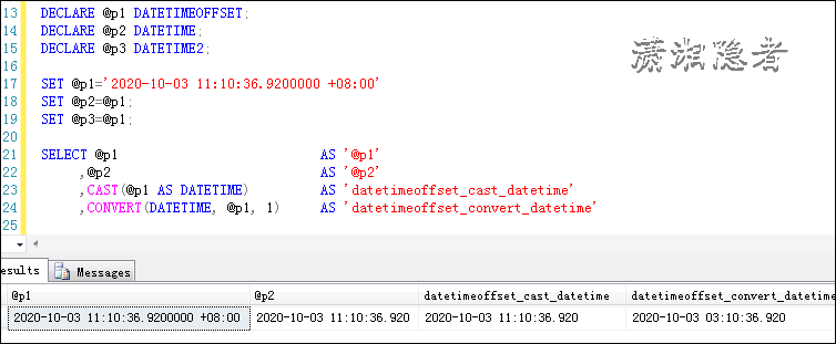 SET @p1='2020-10-03 11:10:36.9200000 +08:00'