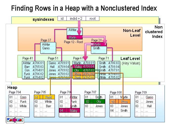 堆表內的數據頁和行沒有任何特定的順序,也不鏈接在一起。數據頁之間唯一的邏輯連接是記錄在IAM頁內的信息
