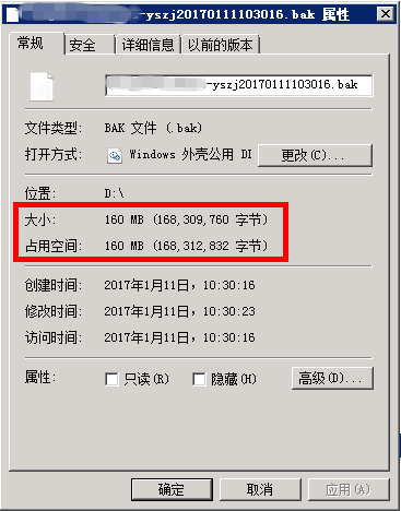 備份成功后,發現備份的bak文件只有160MB大小:
