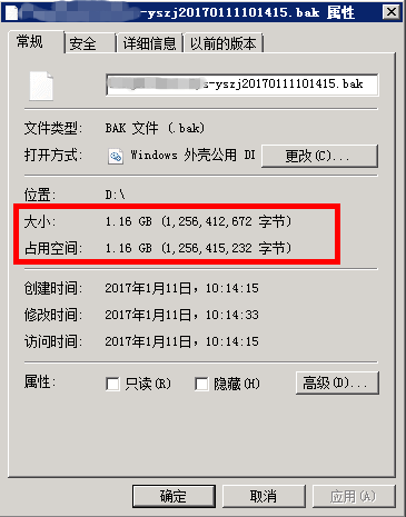 備份成功后,備份的bak文件有1.16G大小: