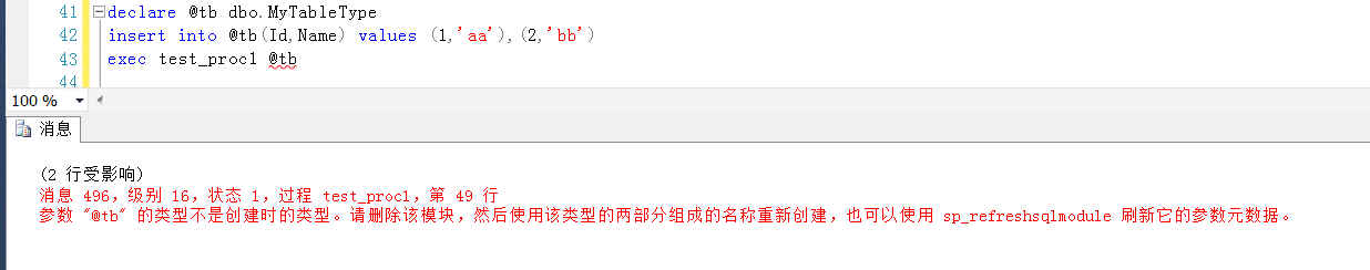 重建TableType之后,先前存儲過程中用到這個TableType的存儲過程是無法編譯通過的