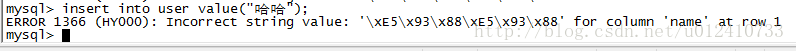 insert into user value("哈哈");