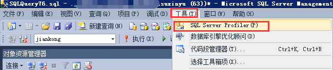 打開 SSMS,點擊工具>,選擇 SQL Server Profiler>,如下圖。